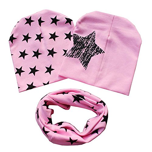 Ochine ベビー キッズ 子供 星柄帽子二枚+星柄マフラー コットン 三点セット 超可愛い 男女兼用 保温防寒 撮影用にも 出産祝い 贈り物 フリーサイズ 7色選択