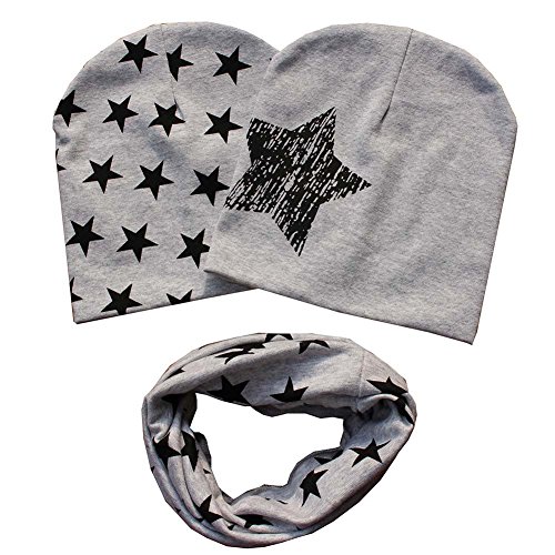 Ochine ベビー キッズ 子供 星柄帽子二枚+星柄マフラー コットン 三点セット 超可愛い 男女兼用 保温防寒 撮影用にも 出産祝い 贈り物 フリーサイズ 7色選択