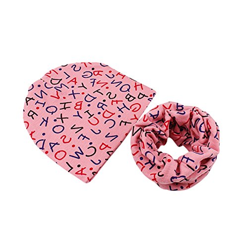 Ochine ベビー キッズ 子供 帽子+マフラー コットン 二点セット 英字柄 超可愛い 男女兼用 保温防寒 撮影用にも 出産祝い 贈り物 フリーサイズ 6色選択