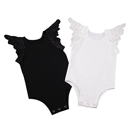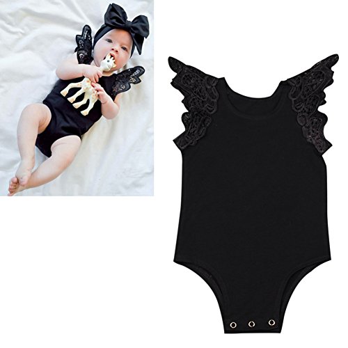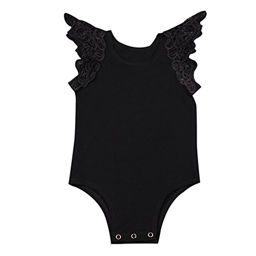 Ochine 新生児 幼児 女の子 綿100% 服 ロンパース レース 子供服 0-2歳設定 ノースリーブ カバーオール 出産祝い 4サイズ選べる (S, ブラック)