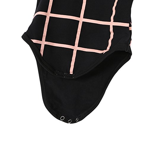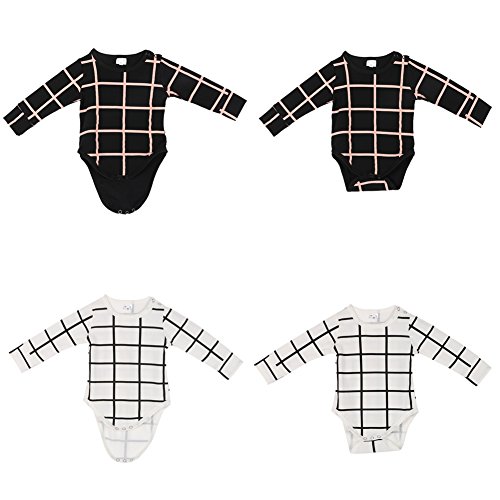 Ochine 新生児 幼児 男女兼用 格子柄 クルーネック コットンブレンド 服 ロンパース 子供服 0-2歳設定 長袖 カバーオール 出産祝い 4サイズ選べる (M, ブラック)
