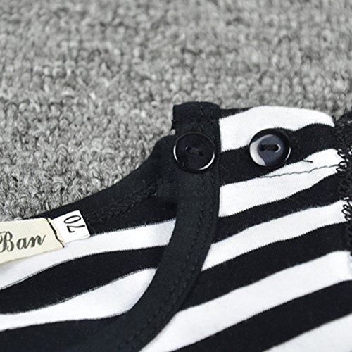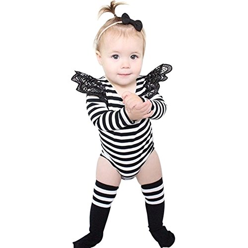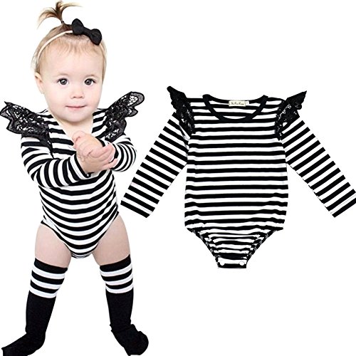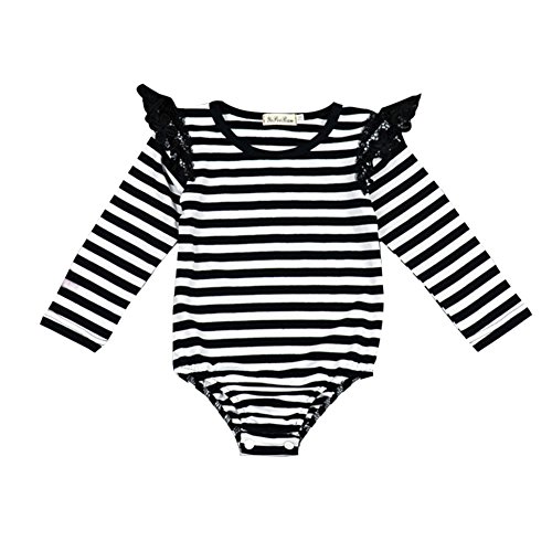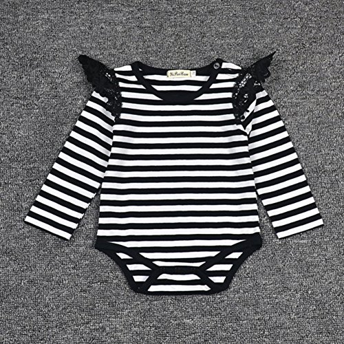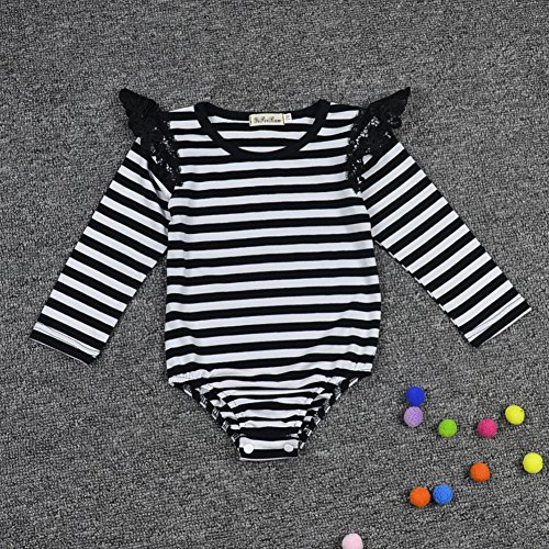Ochine 新生児 幼児 女の子 ロンパース ストライプ 子供服 レース 0-2歳設定 長袖 カバーオール 出産祝い 4サイズ選べる (M、6-12月)