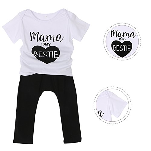 Ochine 短袖 英字プリントTシャツ&ヒョウプリントパンツ 上下 2点セット カバーオール 短袖 ウエスト ゴム 仕様 セット 子供服 ベビー パジャマ 普段着 ユニセット 子供 ベビー 服 男女兼用 (S、0-1歳)