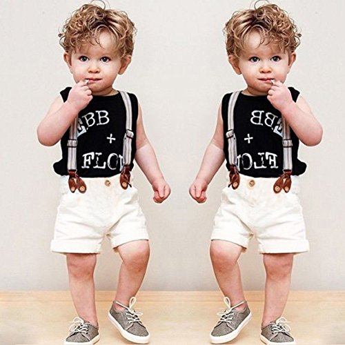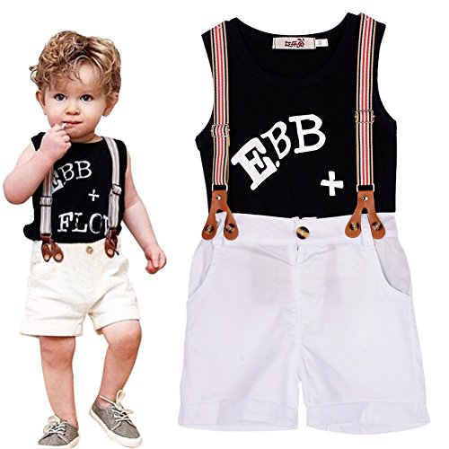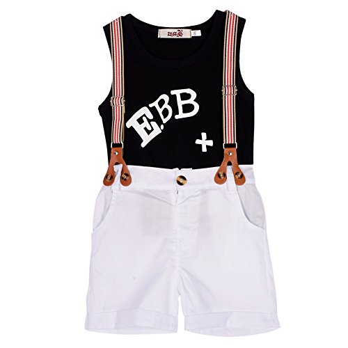 Ochine ノースリーブTシャツ&ストラップパンツ 上下 2点セット カバーオール ベビー服 フォーマル 新生児 出産祝い 結婚式 (L、5-6歳)