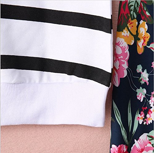 Ochine 女の子 ストライプTシャツ+フローラルパンツ セットアップ 子供服 ベビー パジャマ 普段着 子供 ベビー服 女の子 (L、3-4歳)