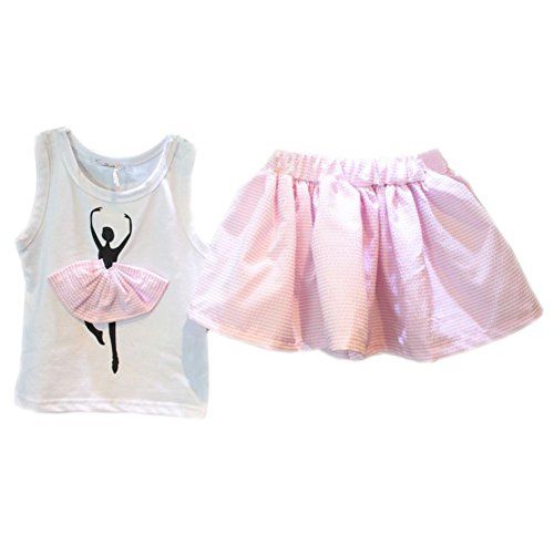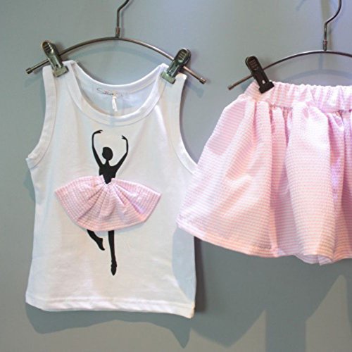 Ochine 女の子 サンマー スウィートバレエTシャツ+ショートスカート セットアップ 子供洋服 誕生日 入学式 子供の日 三五七 遊園地 演奏会に (S、1-2歳)