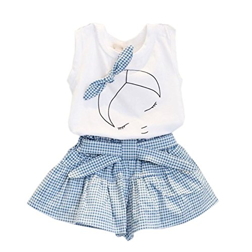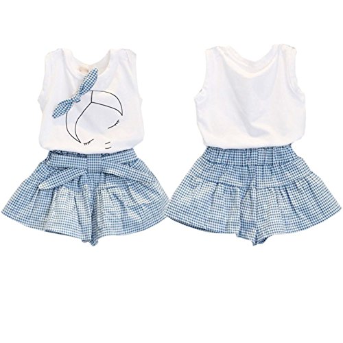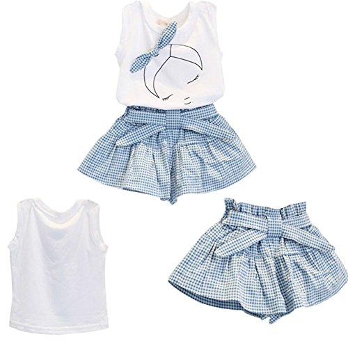 Ochine 女の子 ノースリーブTシャツ+ショートスカート セットアップ 子供洋服 誕生日 入学式 子供の日 三五七 遊園地 演奏会に (S、1-2歳)