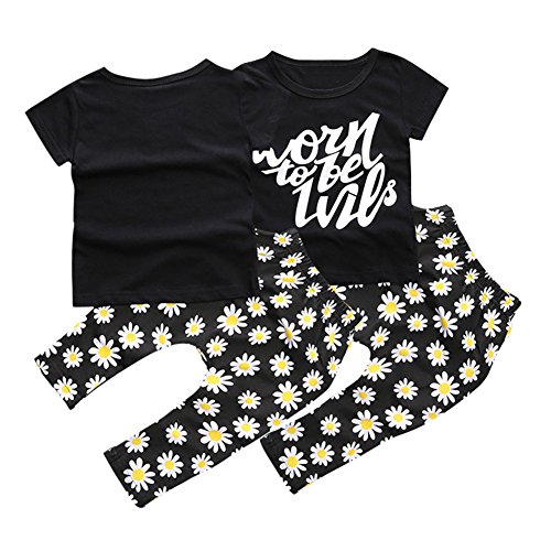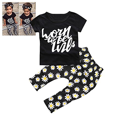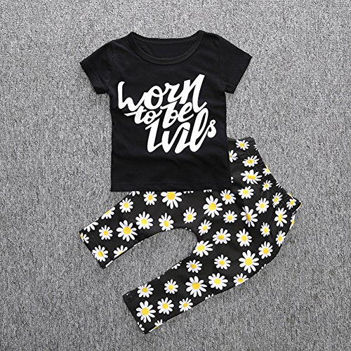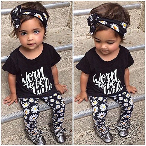 Ochine 短袖 英字プリントTシャツ&ロングパンツ 上下 ヘッドバンド 付き 3点セット セットアップ 子供服 ベビー パジャマ 普段着 子供 ベビー服 男女兼用 (A70、0-6月)