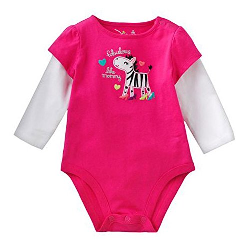 Ochine 新生児 幼児 男の子 子供服 かわいい ロンパース 子供服 長袖 カバーオール 4色選べる (18M, ローズレッド)