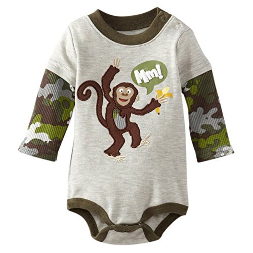 Ochine 新生児 幼児 男の子 子供服 かわいい ロンパース 子供服 長袖 カバーオール 4色選べる (12M, グレー)