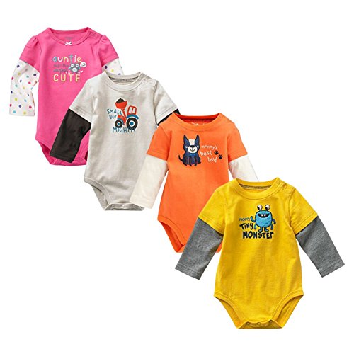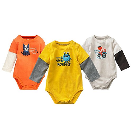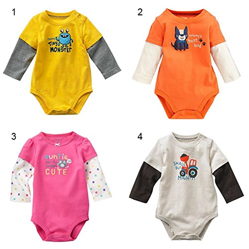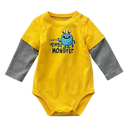 Ochine 新生児 幼児 男の子 子供服 かわいい ロンパース 子供服 長袖 カバーオール 4色選べる (12M, イエロー)