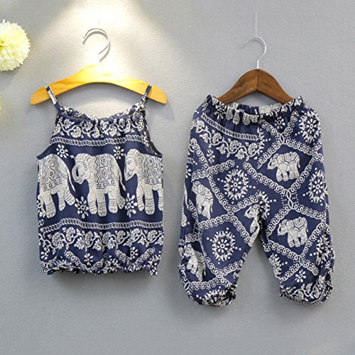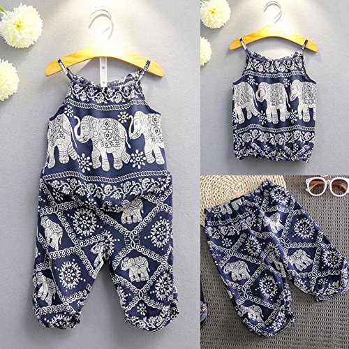 Ochine 新生児 幼児 ロンパース 女の子 綿 かわいいカートゥーン象柄 子供服 2-7歳設定 スリング カバーオール 5サイズ選べる (7、2-3歳)