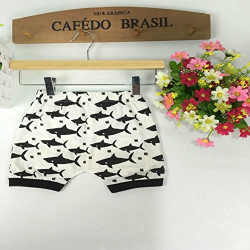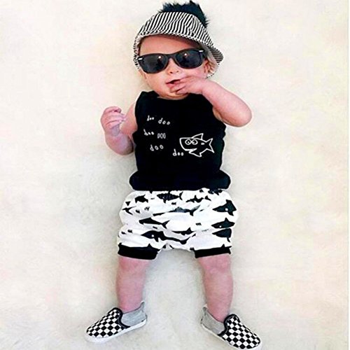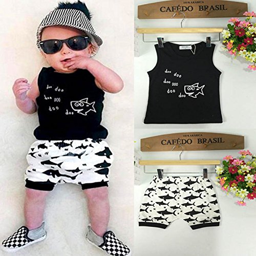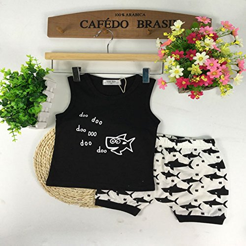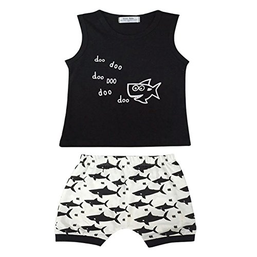 Ochine 子供服 ノースリーブTシャツ&ショートパンツ 上下 2点セット 短袖 ウエスト ゴム 仕様 カッコイイ セットアップ ベビー 普段着 鮫プリント 男女兼用 (80、6-12月)