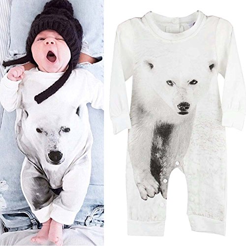 Ochine 新生児 幼児 ロンパース 男女兼用 シロクマプリント コットンブレンド かわいい子供服 ベビー服 0-2歳設定 長袖 カバーオール 出産祝い 4サイズ選べる ホワイト (70、0-6月)