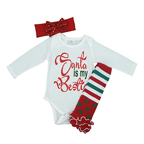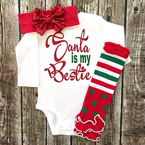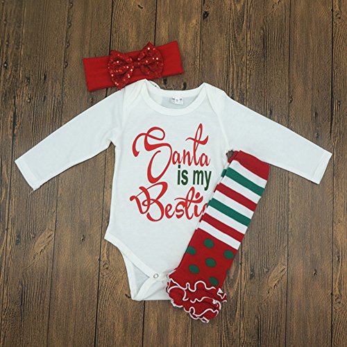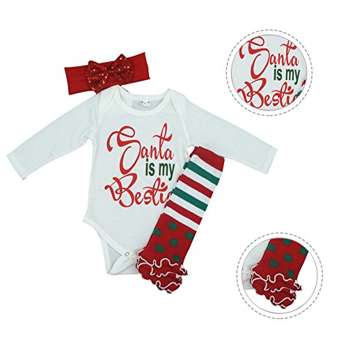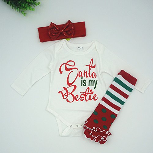 Ochine クリスマス 男の子&女の子 ロンパース+ヘアバンド+足カバー 上下2点セット マルロン綿生地 クリスマススタイル 子供服 セットアップ 春 秋 4サイズ選べる (70、0-6月)
