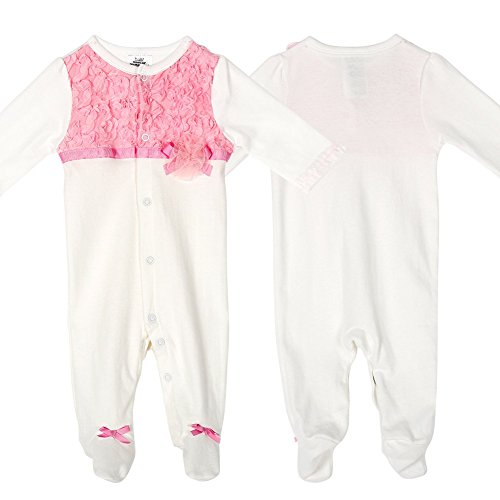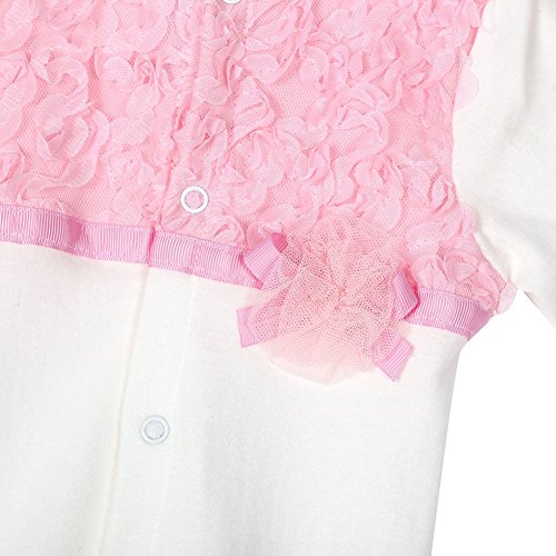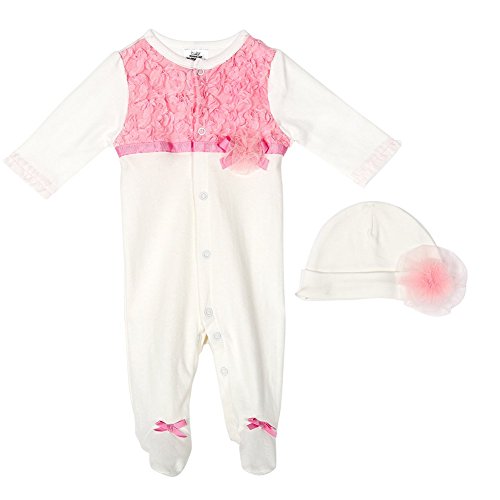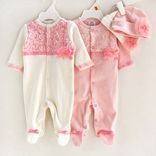 Ochine新生児 幼児 男女兼用 ロンパース 帽子付き 花柄 クルーネック コットンブレンド レース ベビー服 子供服 0-9月設定 長袖カバーオール 出産祝い 3サイズ選べる (S, ホワイト)
