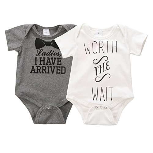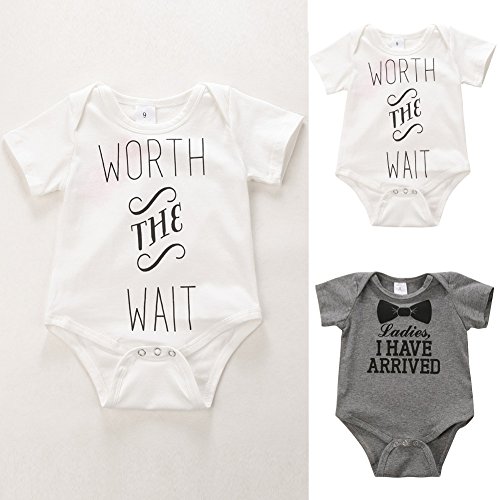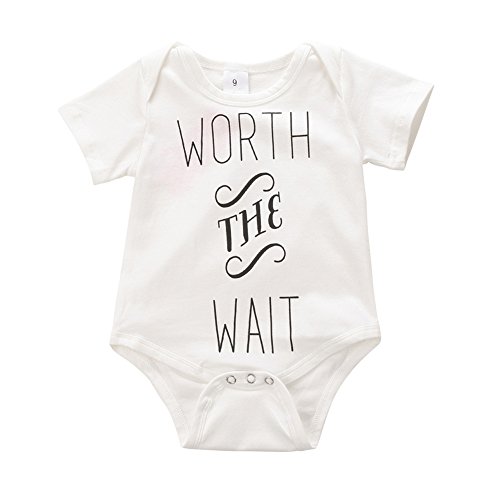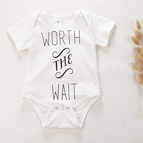 Ochine 新生児 幼児 ロンパース 英字プリント 男女兼用 短袖 コットンブレンド 子供服 0-12月設定 カバーオール 4サイズ選べる (S, ホワイト)