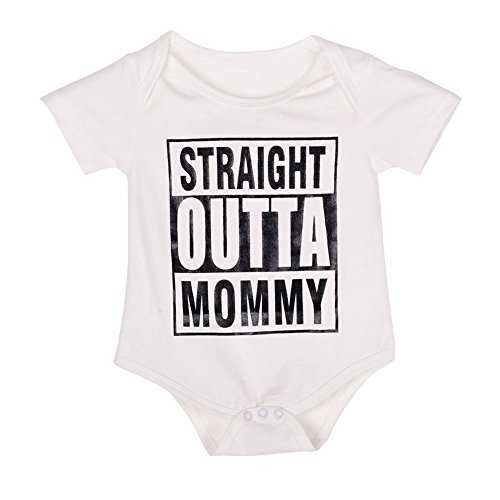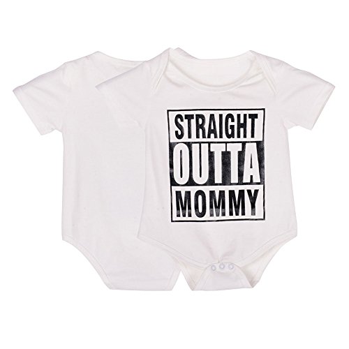 Ochine 新生児 幼児 ロンパース 男の子 短袖 コットンブレンド 英字プリント 子供服 0-18月設定 ホワイト カバーオール 4サイズ選べる (S、3-6月)