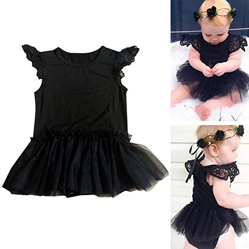 Ochine 新生児 幼児 ロンパース 男女兼用 長袖 レース ノースリーブ コットンブレンド かわいいデザイン ベビー服 0-24月設定 カバーオール 4サイズ選べる (XS, ブラック)