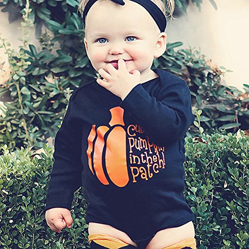 Ochine ハロウィン 新生児 幼児 ロンパース 男女兼用 長袖 コットンブレンド カボチャプリント 子供服 0-18月設定 カボチャカバーオール 3サイズ選べる (80、6-12月)