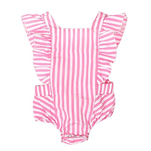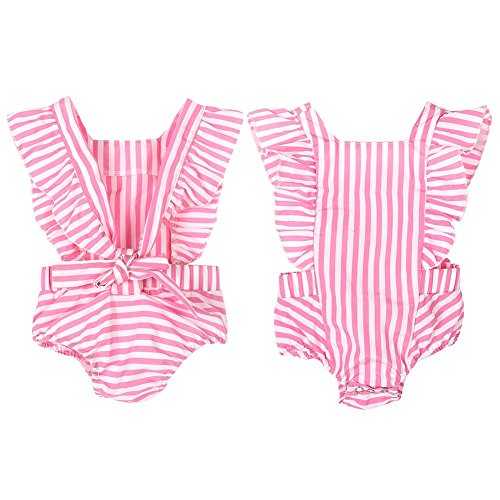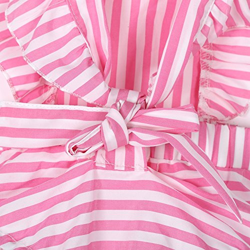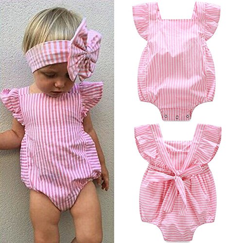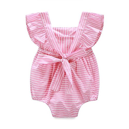 Ochine 新生児 幼児 ロンパース 女の子 ノースリーブ 綿&布帛 ストライプ ピンク 蝶結び かわいい子供服 0-12月設定 カバーオール 出産祝い 4サイズ選べる (L、9-12月)