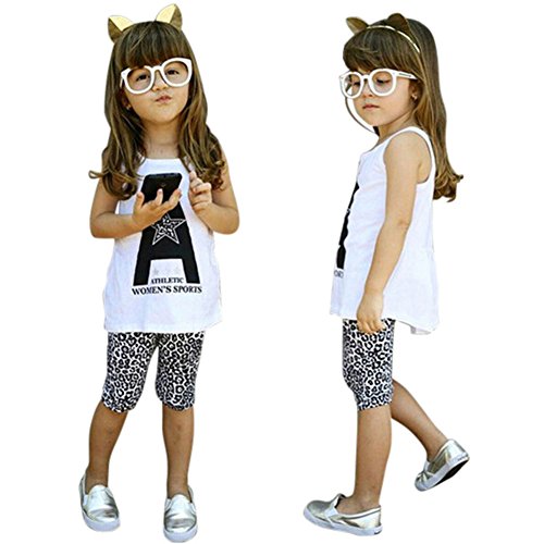Ochine 子供服 英字プリントTシャツ&キツイロングパンツ 上下 2点セット ウエスト ゴム 仕様 カッコイイ セットアップ ベビー 普段着 女の子 (L、5歳)