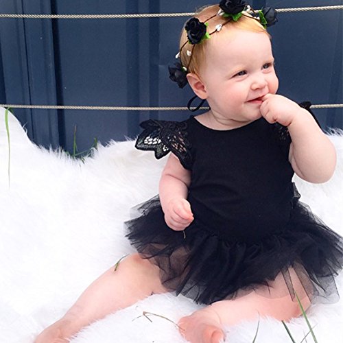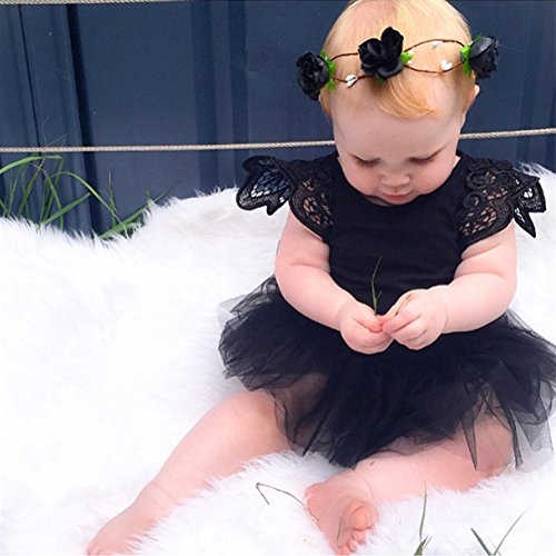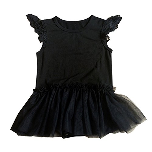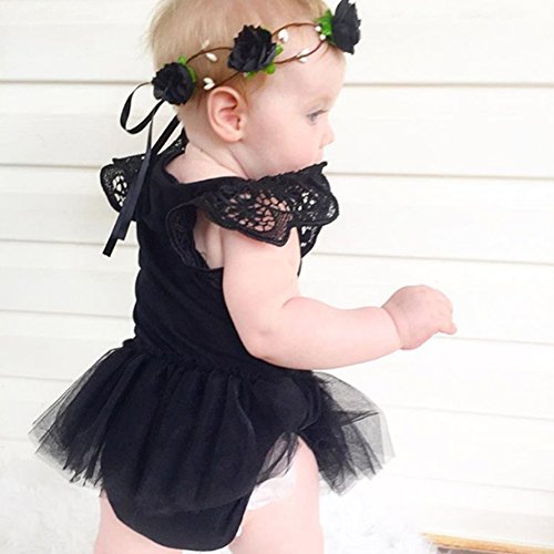 Ochine 新生児 幼児 ロンパース 男女兼用 長袖 レース ノースリーブ コットンブレンド かわいいデザイン ベビー服 0-24月設定 カバーオール 4サイズ選べる (S, ブラック)