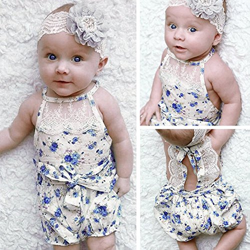 Ochine 幼児 新生児 ロンパース+ウエストバンド 上下2点セット 綿&布帛生地 レース 子供服 ベビー服 セットアップ 春 夏 4サイズ選べる 0-18月設定 出産祝い 女の子 (70、0-3月)