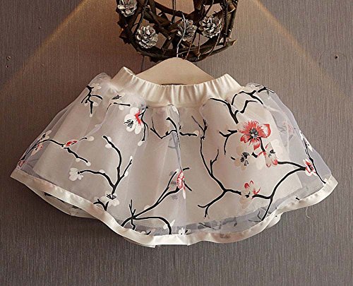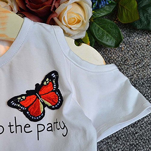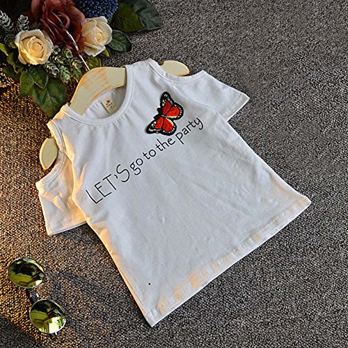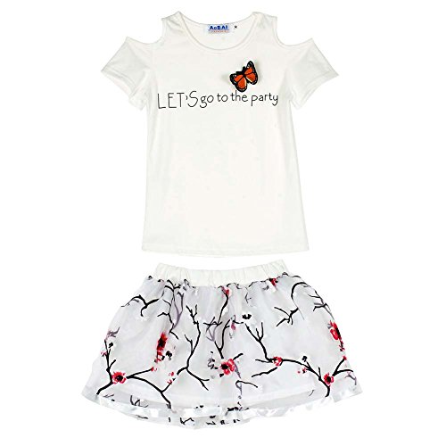 Ochine ファッション 蝶プリントTシャツ&スカート 上下 2点セット ガールズ 女児 かわいいプリント コットン プリンセスドレス 2-7歳設定 春夏 誕生日 結婚式 入学式 子供の日 遊園地に (S、3-4歳)