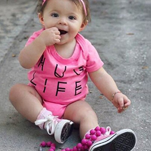 Ochine 新生児 幼児 ロンパース 女の子 短袖 コットンブレンド ヒョウ柄 ピンク ヘアバンド付き かわいい子供服 0-18月設定 カバーオール 4サイズ選べる (M, ピンク)