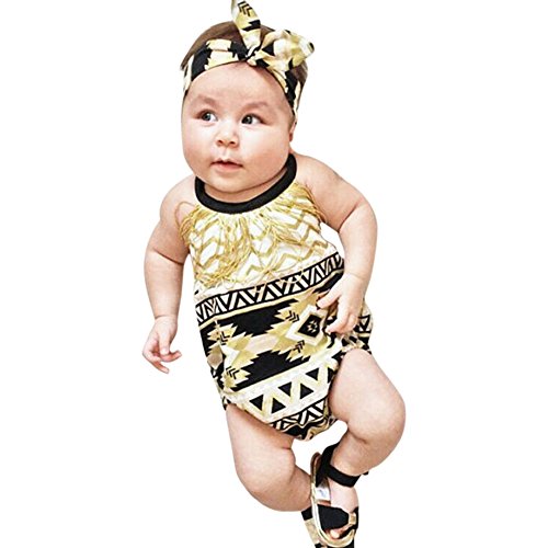 Ochine 幼児 新生児 ロンパース+ヘアバンド 2点セット ミルクシルク生地 タッセルススタイル 男の子&女の子 子供服 セットアップ 春 夏 4サイズ選べる (M、6-12月)