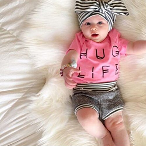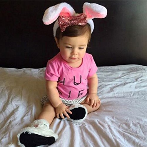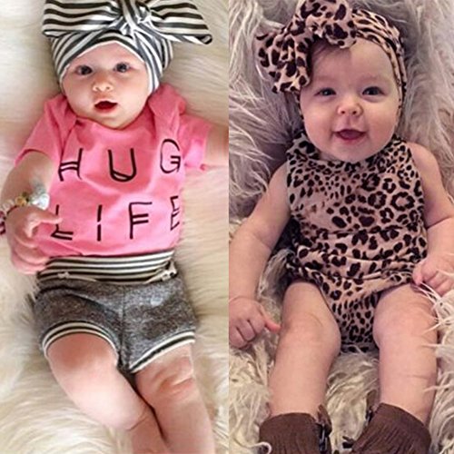 Ochine 新生児 幼児 ロンパース 女の子 短袖 コットンブレンド ヒョウ柄 ピンク ヘアバンド付き かわいい子供服 0-18月設定 カバーオール 4サイズ選べる (XS, ピンク)