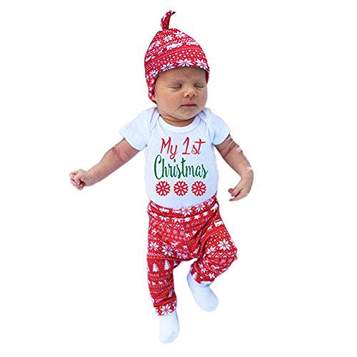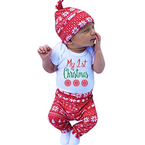 Ochine 幼児 新生児 ロンパース+パンツ+帽子 クリスマス ベビー服 綿 カバーオール 男女兼用 出産祝い クリスマスプレゼント 0-18月設定