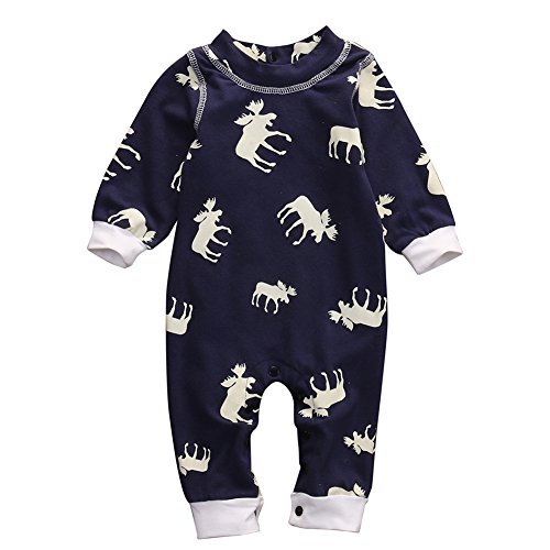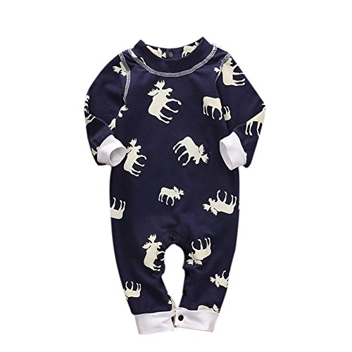 Ochine キッズ 新生児 幼児 長袖 ロンパース 男女兼用 綿 トナカイ柄 子供服 カバーオール ブラック 出産祝い 70 80 90 4-12月設定