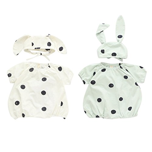 Ochine 新生児 幼児 ロンパース ベービー服 女の子&男の子 綿  ポルカドット柄   帽子付き 0-2歳設定 半袖 可愛いデザイン カバーオール 出産祝い 4サイズ選べる