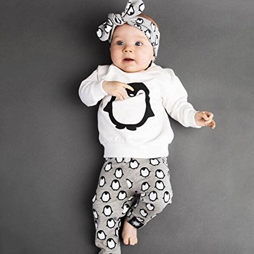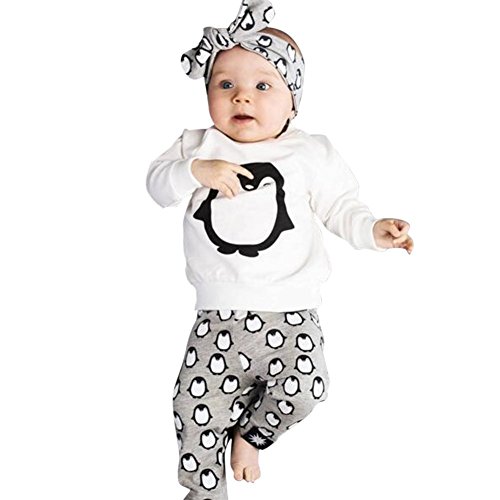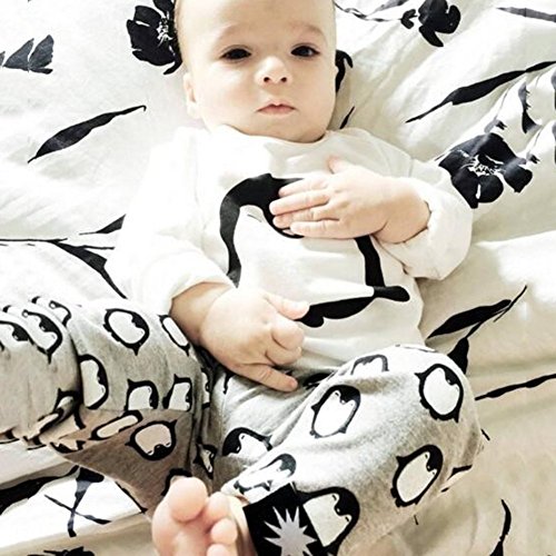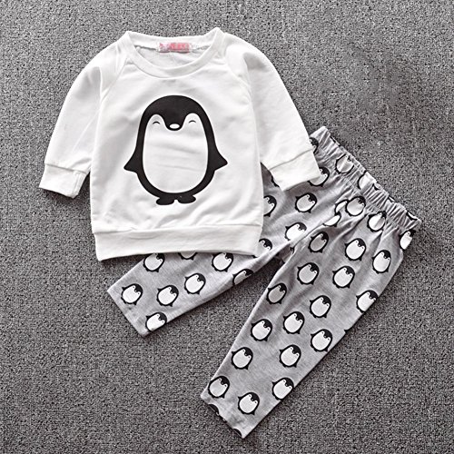 Ochine 新生児 上着+パンツ 長袖 セット 男女兼用 綿製品 ペンギン柄 ウエスト セットアップ 子供服 ベビー服 カバーオール 出産祝い 普段着 ユニセックス 70 80 90 100