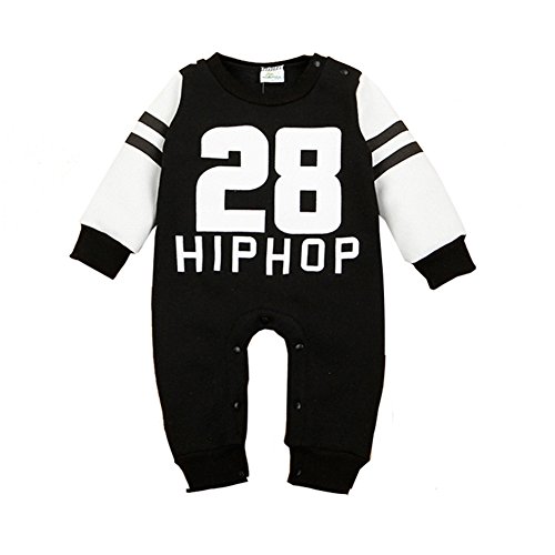 Ochine キッズ 新生児 幼児 長袖 ロンパース 男女兼用 綿 数字プリント 野球スタイル 子供服 カバーオール ブラック 出産祝い 80 90 95 0-24月設定