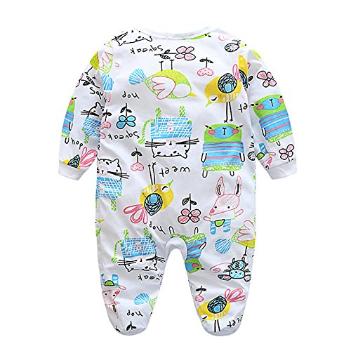 Ochine 新生児 幼児 男女兼用 ロンパース 赤ちゃん 着ぐるみ 可愛い柄 ボタン クルーネック 綿 ベビー服 子供服 0-24月設定 長袖カバーオール 肌着 ルームウェア パジャマ 出産祝い 70 80 90 95