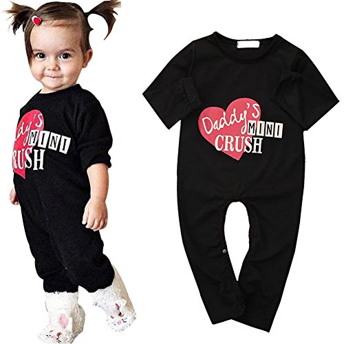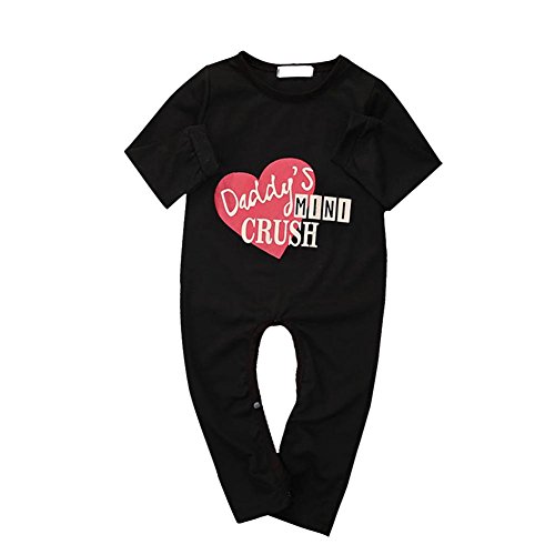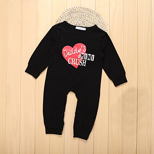 Ochine 新生児 幼児 長袖 ロンパース 女の子 コットンブレンド かわいい ハートプリント 子供服 ブラック カバーオール 出産祝い 0-24月設定