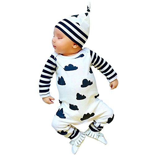Ochine 新生児 幼児 長袖 ロンパース 男女兼用 綿 雲柄 子供服 カバーオール 出産祝い 70-100 4-18月設定