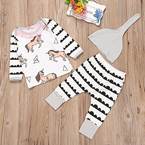 Ochine 新生児 幼児 長袖 上着+パンツ+帽子 三点セット 女の子 コットンブレンド かわいいシマウマ柄 子供服 ベビー服 カバーオール 出産祝い 0-18月設定