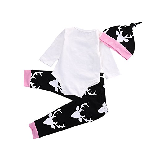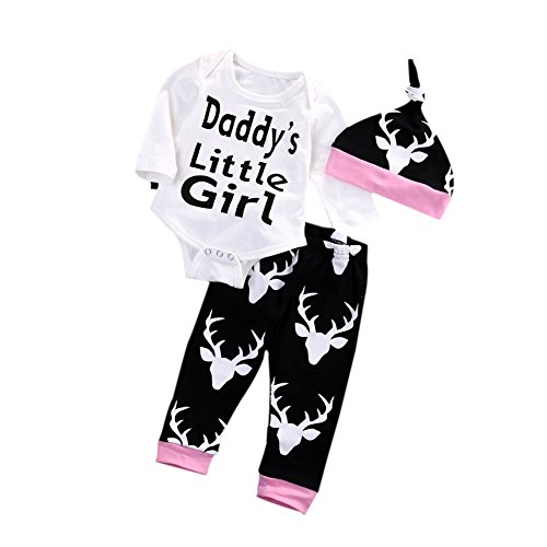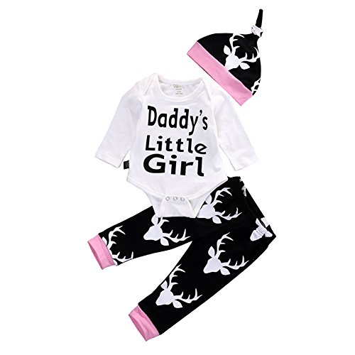 Ochine 新生児 長袖 ロンパース+パンツ+帽子 3点セット カバーオール コットンブレンド かわいいトナカイ柄 「Daddy’s Little Girl」 子供服 出産祝い 0-18月設定