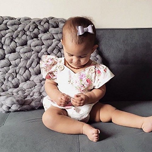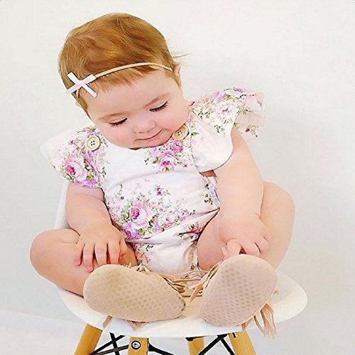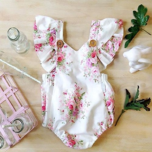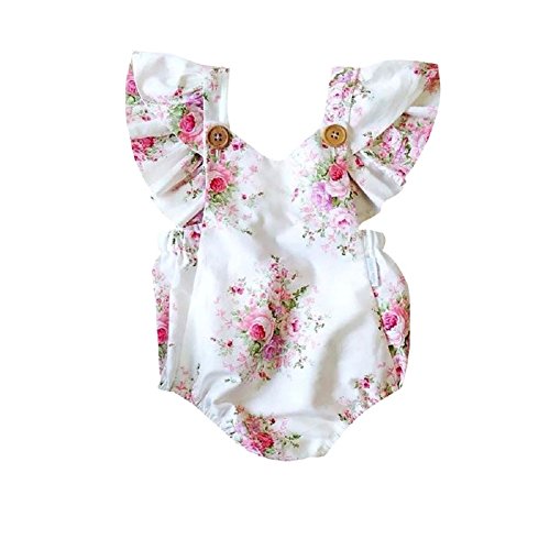 Ochine 新生児 幼児 女の子 ホワイト ロンパース ノースリーブ カバーオール パジャマにも カジュアル セット 可愛い花柄 0~24ヶ月設 70 80 90 100