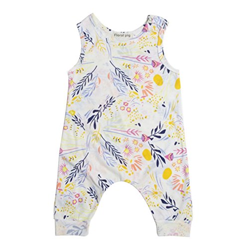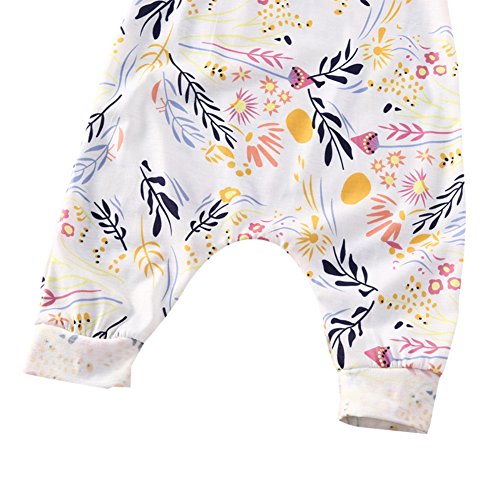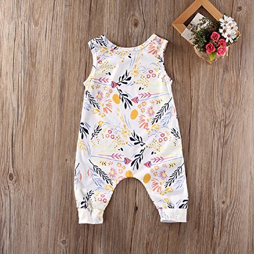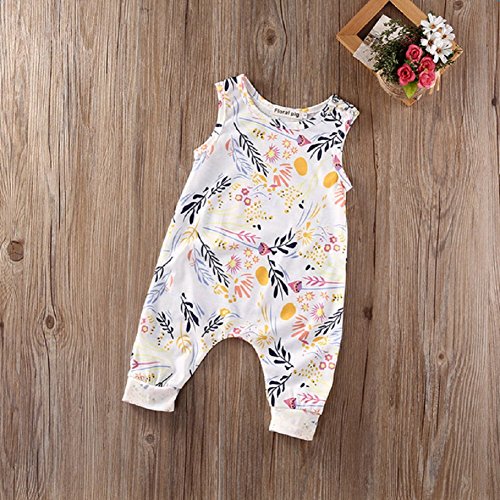 Ochine 新生児 幼児 女の子 ホワイト ロンパース ノースリーブ カバーオール パジャマ カジュアル セット 可愛い花柄 0~24ヶ月設 70 80 90 100