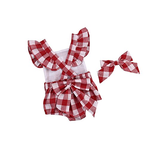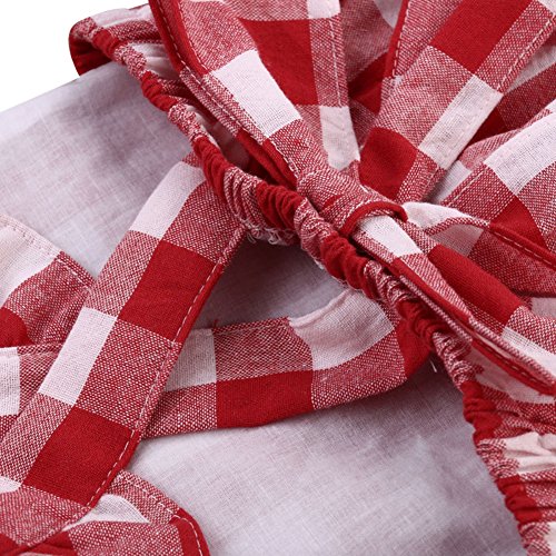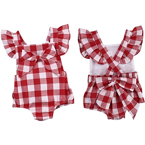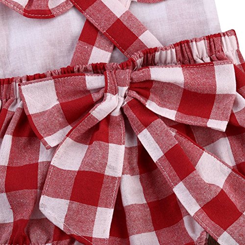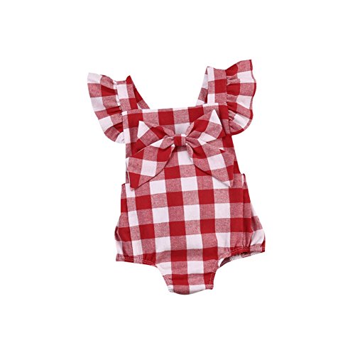 Ochine 新生児 幼児 女の子 レッドチェック柄 ロンパース ノースリーブ カバーオール 蝶結び付き パジャマにも カジュアル 0~18ヶ月設 70 80 90 100