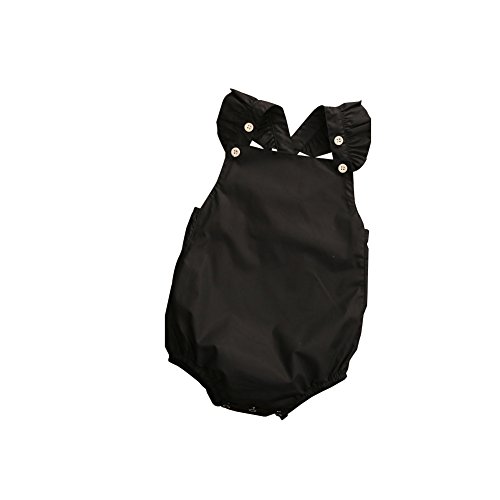 Ochine 新生児 幼児 女の子 純色 ロンパース ブラック ピンク ノースリーブ カバーオール 可愛いボタン付き パジャマにも カジュアル 0~18ヶ月設 70 80 90 100