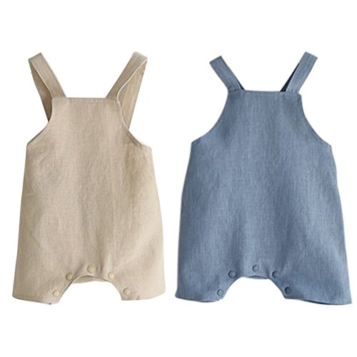 Ochine 新生児 幼児 ノースリーブ ロンパース ショットパンツ 無地 ベービー服 女の子&男の子 麻&綿 かわいい 子供服 カバーオール 出産祝い 6-20月設定