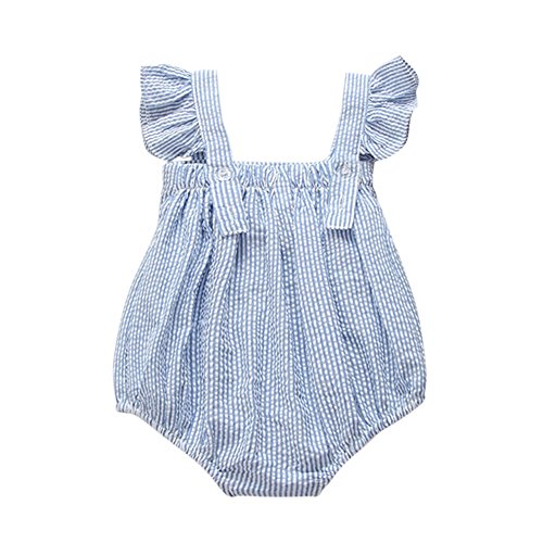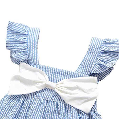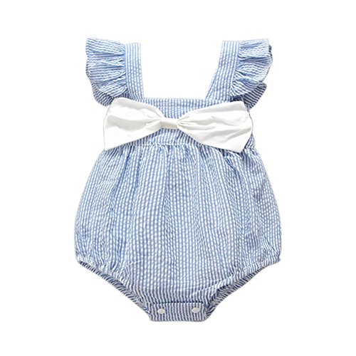 Ochine 夏 ベビー服 ノースリーブロンパース Hネック コットン 蝶結び付き ストライプ柄 女の子 カバーオール 出産祝い 0-3歳設定