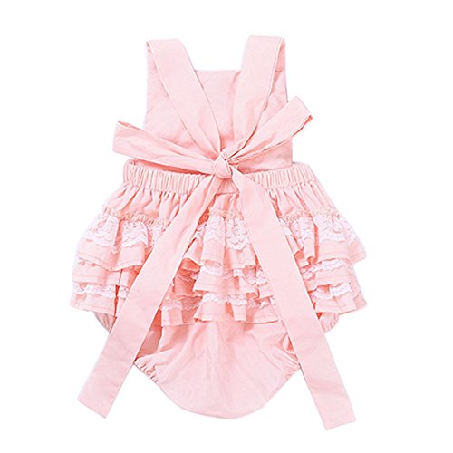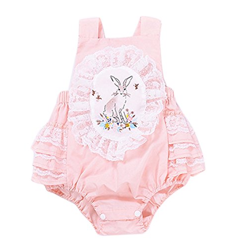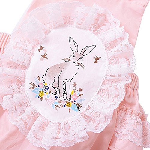 Ochine 夏 ベビー服 ノースリーブロンパース ピンク お姫様のように 女の子 レース ウサギプリント 布帛 カバーオール 出産祝い 0-3歳設定