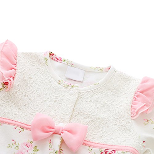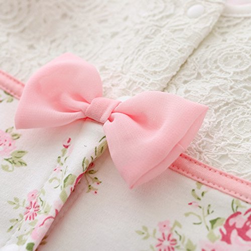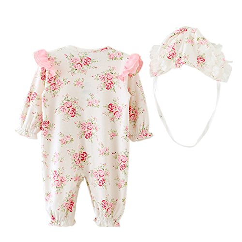 Ochine ベビー服 幼児 子供服 ロンパース+帽子 2点セット 綿&レース カバーオール かわいい花柄 蝶結び 男の子 女の子 お着替え簡単 出産祝い 0-10ヶ月に